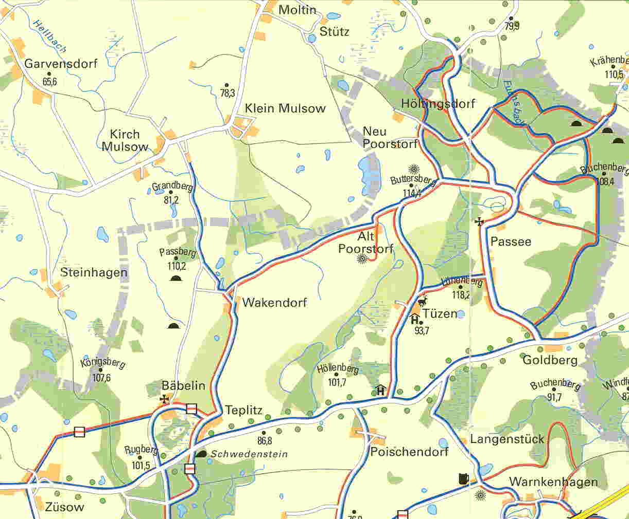 Unsere Tour:mit dem Auto fuhren wir bis nach Züsow, nördlich von Neukloster, in nördöstlicher Richtung folgten wir dem alten Landweg nach Bärbelin von Bärbelin aus ging es nördlich weiter bis Wakendorf und von dort aus weiter in Richtung Norden nach Kirch Mulsow wir folgten anschließend der Landstraße über Klein Mulsow nach Moitin zurück ging es über Höltingsdorf vorbei an Passee und Alt Poorsdorf vorbei am Butterberg (114,4 m) nach Wakendorf, Bärbelin nach Züsow